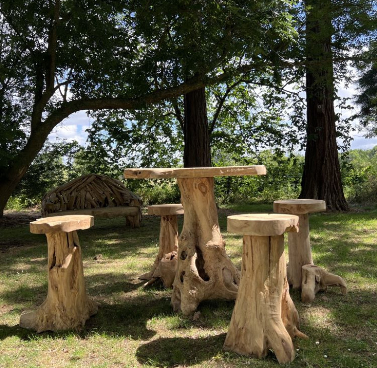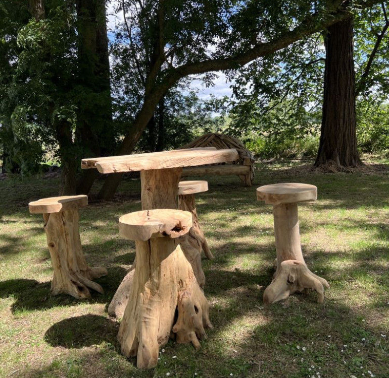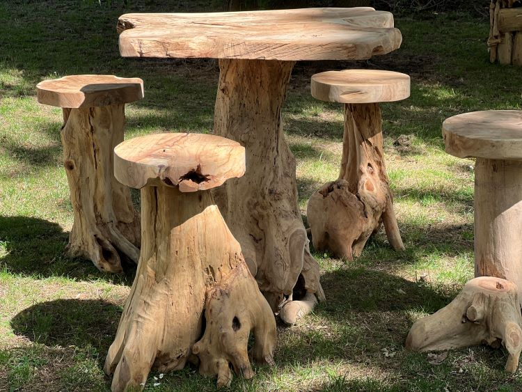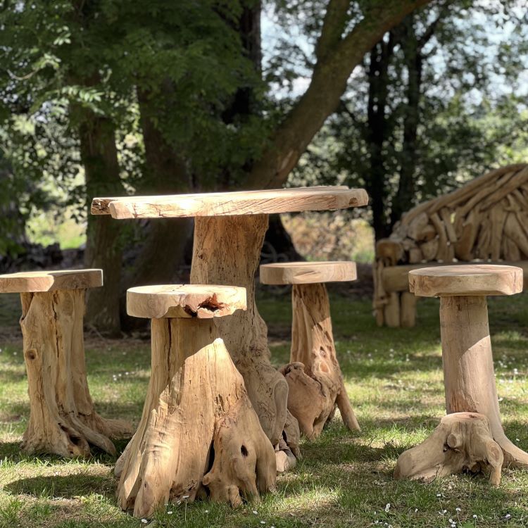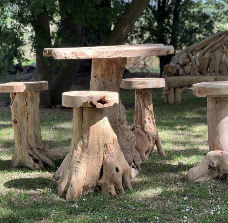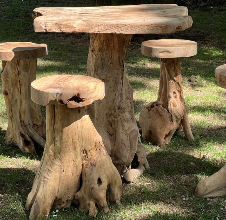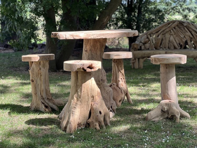 Bring some rustic handcrafted beauty to your bar, man cave, outdoor terrace or garden with this unique table and 4 chairs.