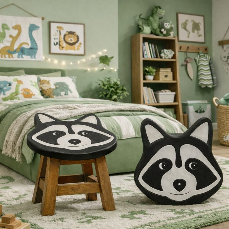 Hand Crafted Stool Racoon
