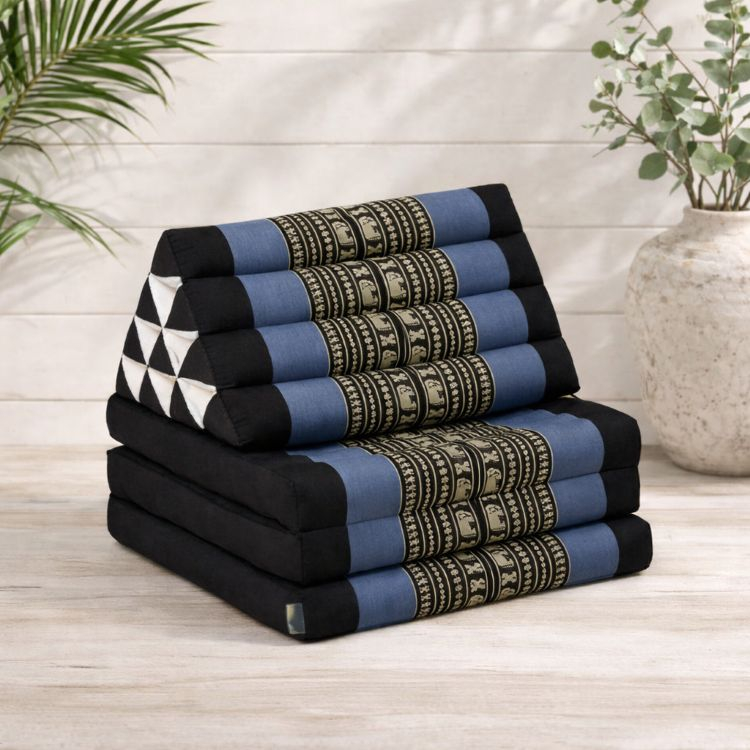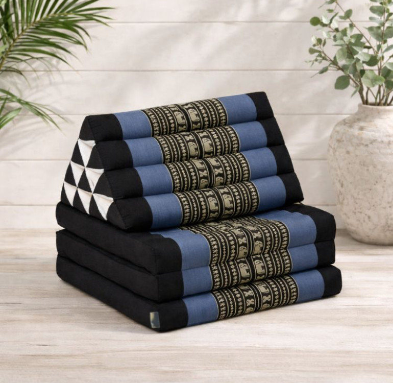 Travellers Finds brings you a wide 3 fold Kapok Thai cushion with recliner.