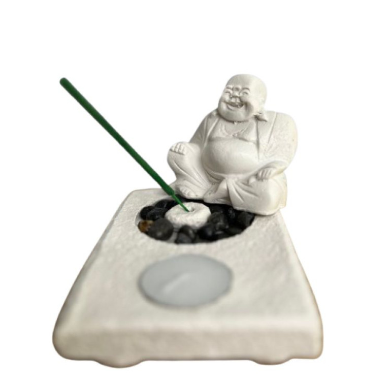 White Laughing Buddha Incense Burner and T-Light Holder