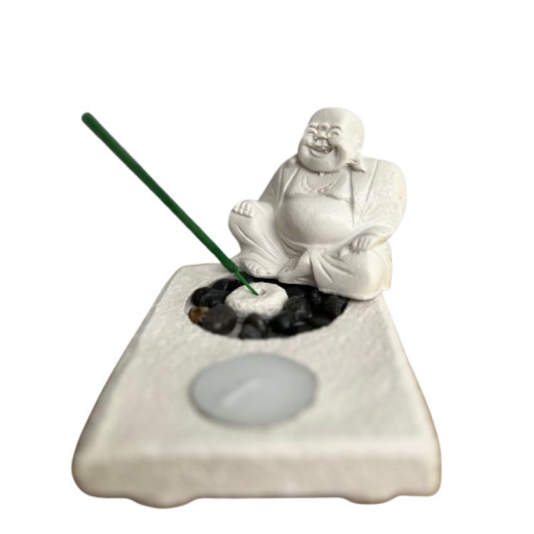 White Laughing Buddha Incense Burner and T-Light Holder