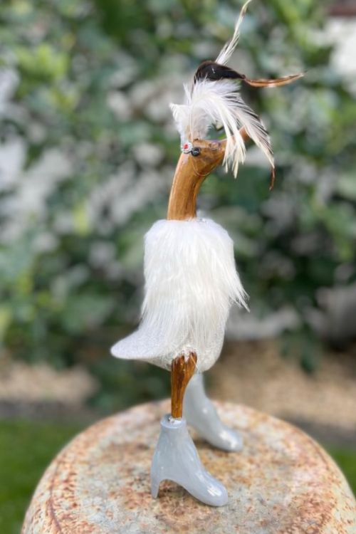 Turn up the glam with our Diva Duck, a show-stopping handmade ornament crafted from sustainable bamboo and dripping with fabulous flair. Strutting in stylish high heels, flaunting a feathered outfit and a touch of sparkle, she’s ready to steal the spotlight on any shelf, desk, or dressing table.