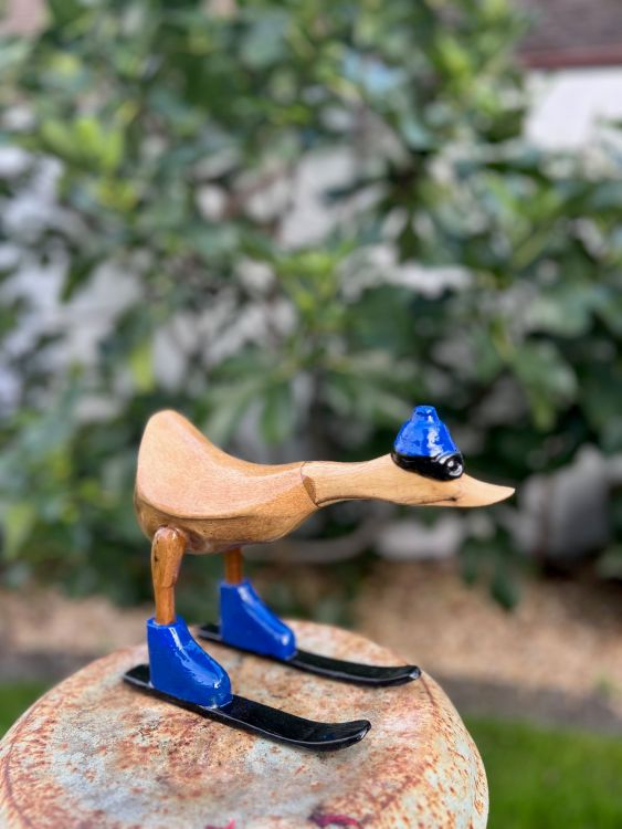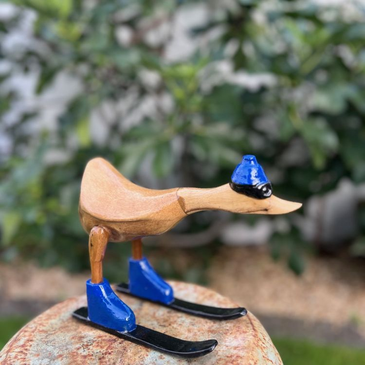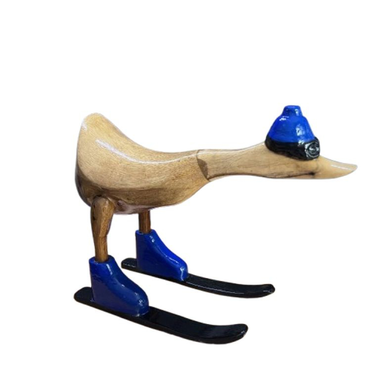 Handmade Skiing Bamboo Duck – Blue hat and boots