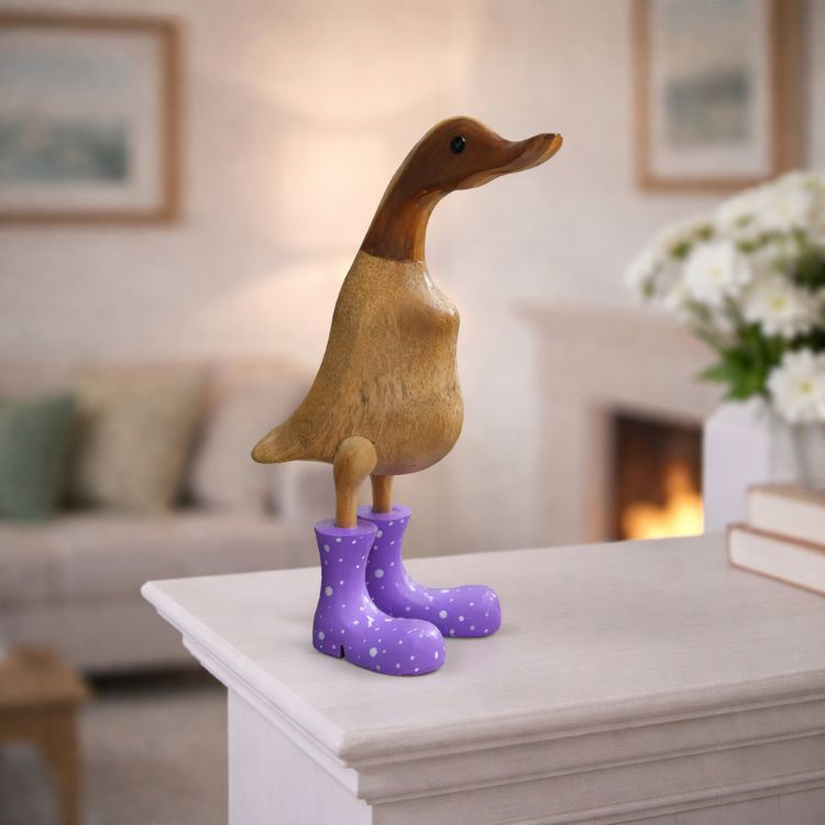 Small Bamboo Duck with Boots Bright Lilac with white spots