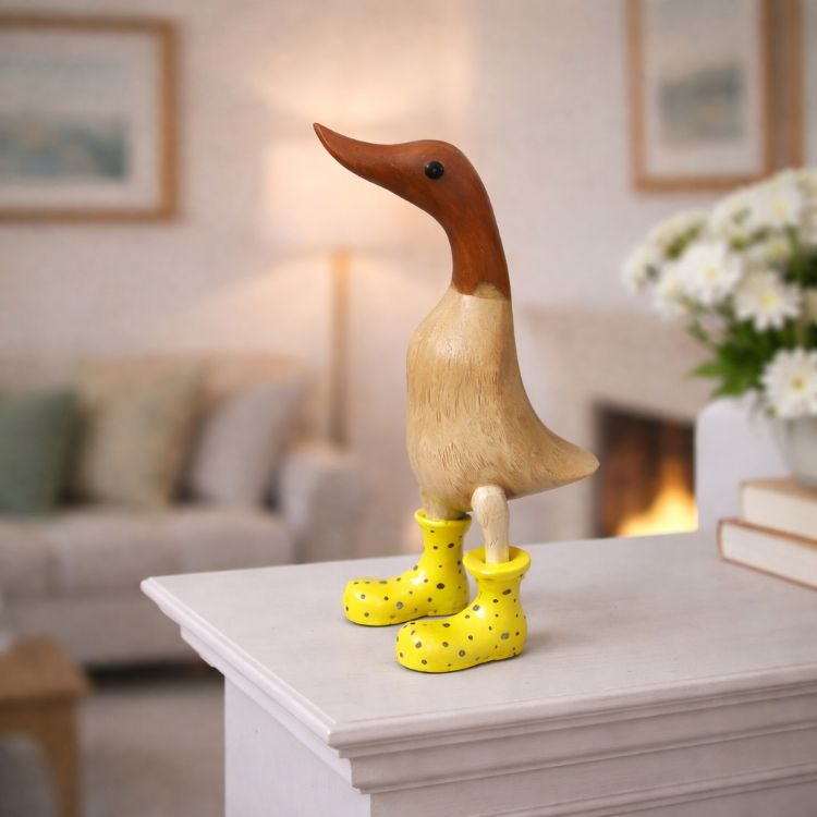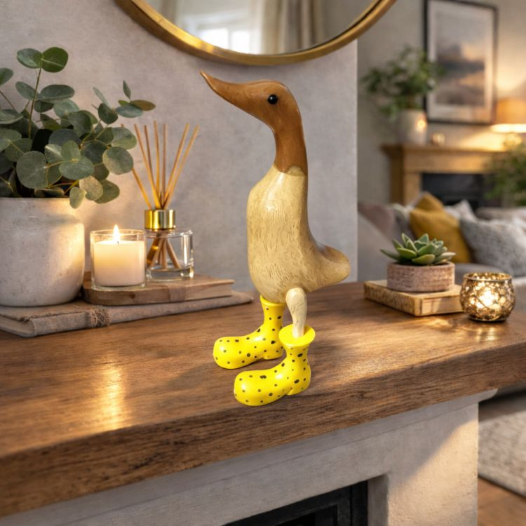 Small Bamboo Duck with Boots Yellow with black spots.