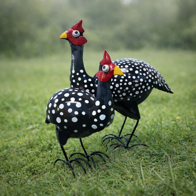Our hand crafted metal painted Guinea Fowl sit beautifully in a border or garden.