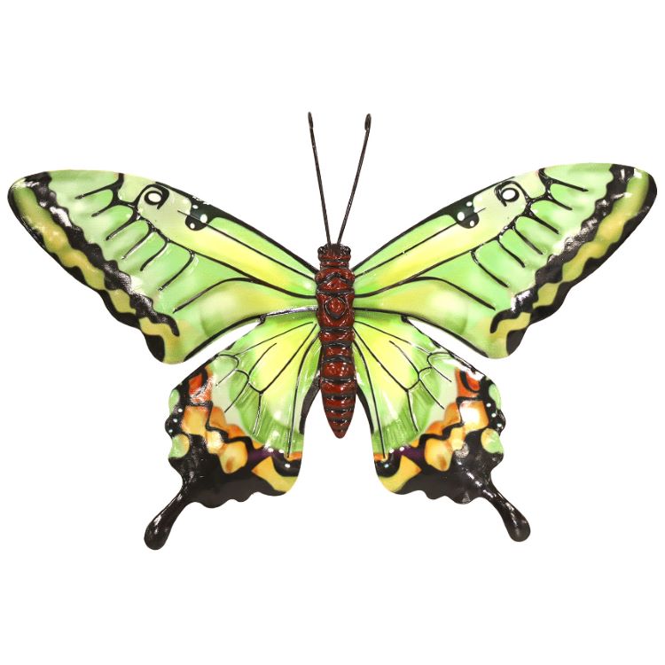 A medium metal Green Butterfly for hanging on a garden wall, fence or inside the home.