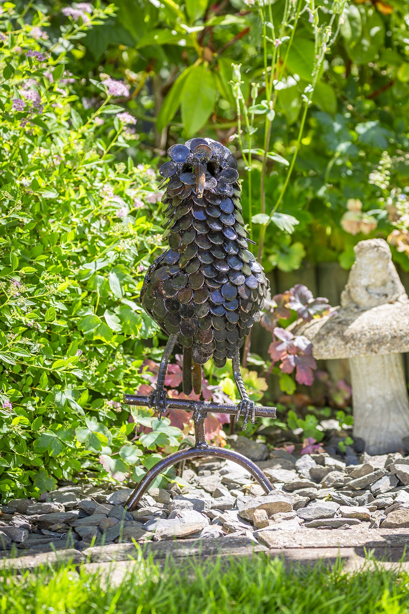 Owl on Perch Measurements approx 50cm high by 13cm width Hand crafted from recycled metal