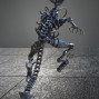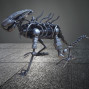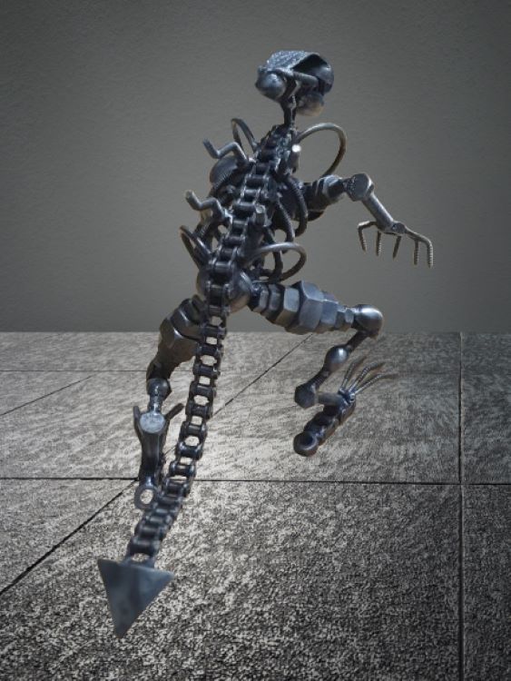 Handcrafted Recycled Metal Crouching Alien Sculpture