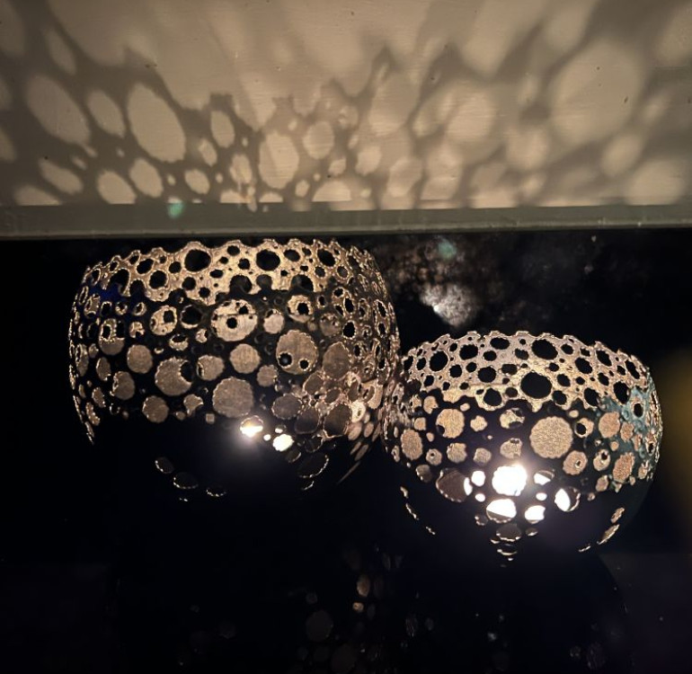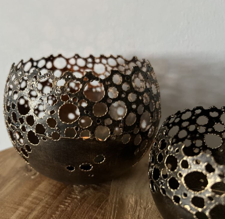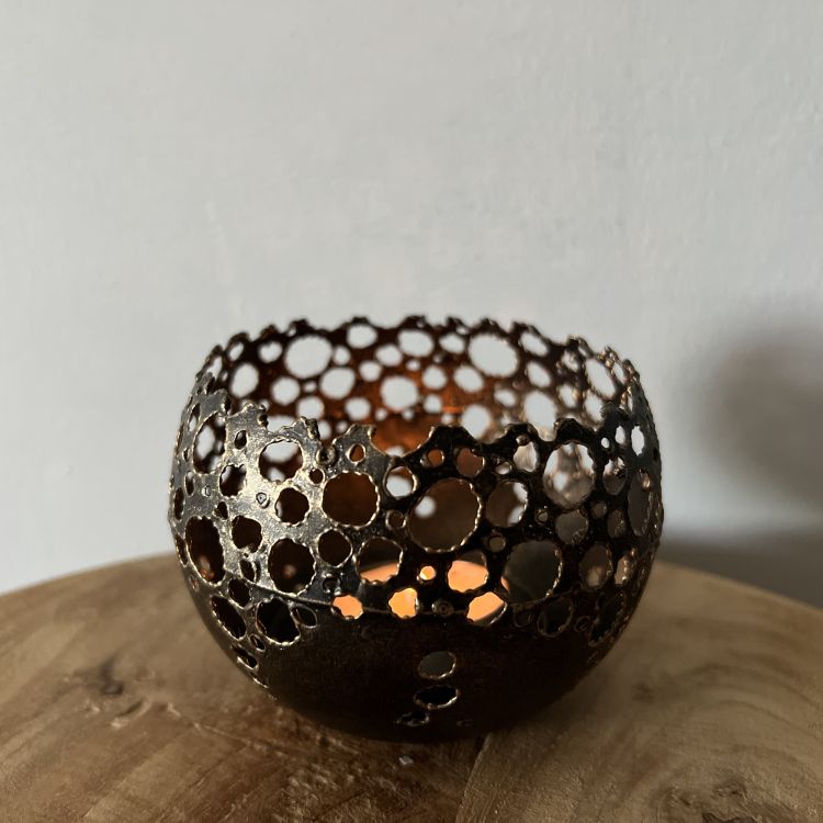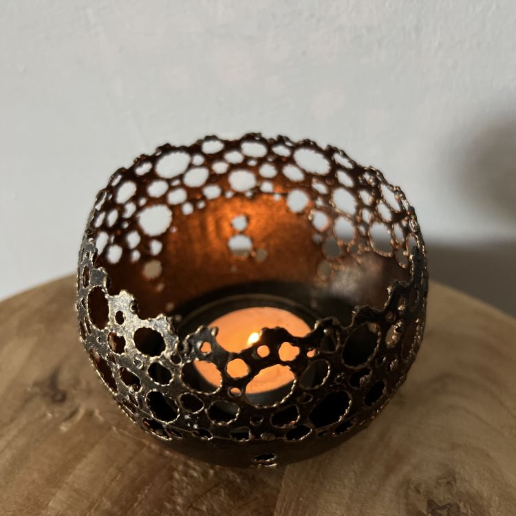Each T-light beautifully handcrafted, each circle handcut out of metal by a skilled artisan craftsperson.