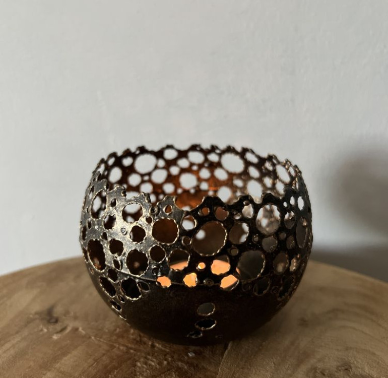 Handcrafted Metal T-Light Holder (Circle Pattern)