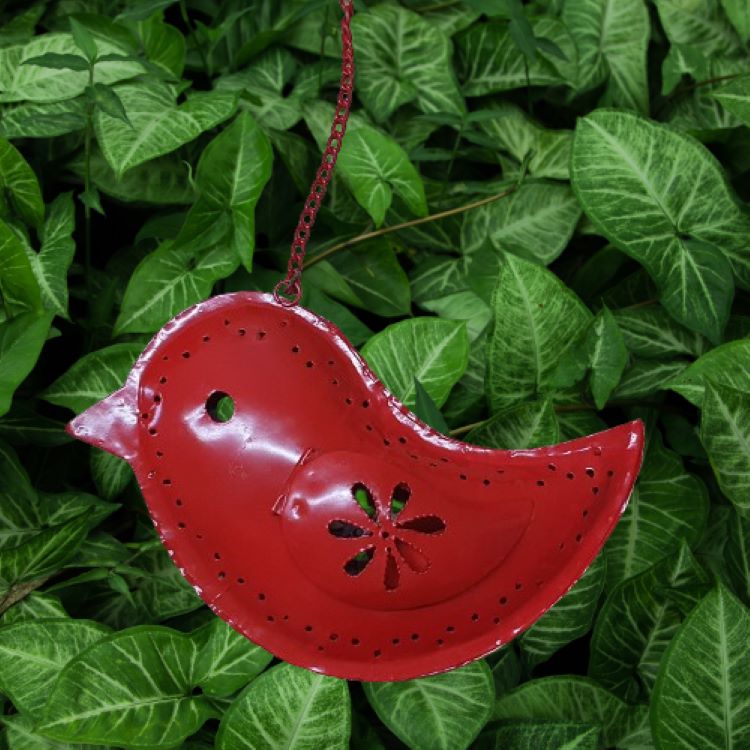 Red Bird hanging T-Light Holder designed and hand crafted for Travellers Finds.