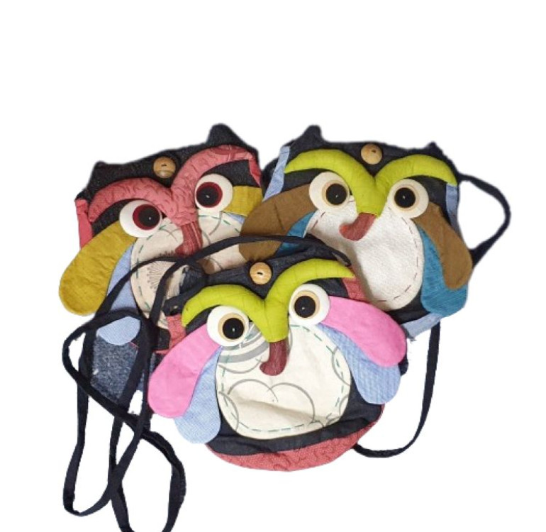 Travellers Finds brings you these brightly coloured handmade Owl Bags with long hanging loop and zip up back.