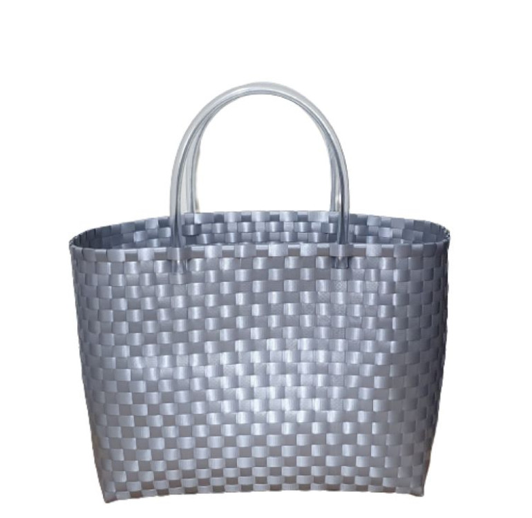 Recycled Plastic Hand Woven Medium Tote Bag with Smooth Handle - Silver