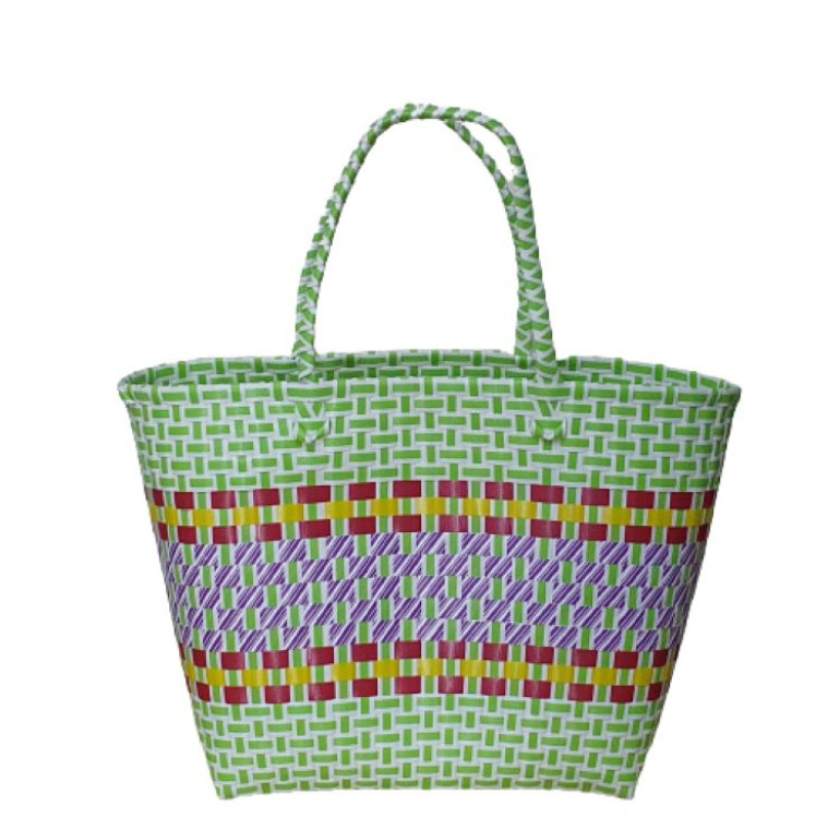 Please be advised these bags are hand weaved from recycled plastic so colours may vary. Please tell us in notes if there is a specific colourway you require.