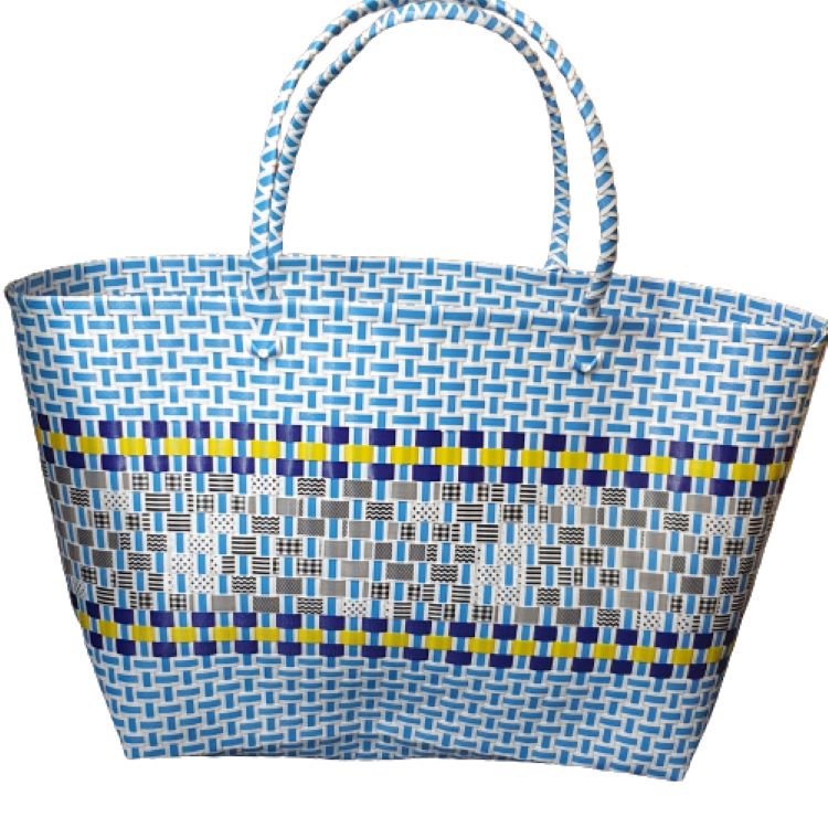 Please be advised these bags are hand weaved from recycled plastic so colours may vary. Please tell us in notes if there is a specific colourway you require.
