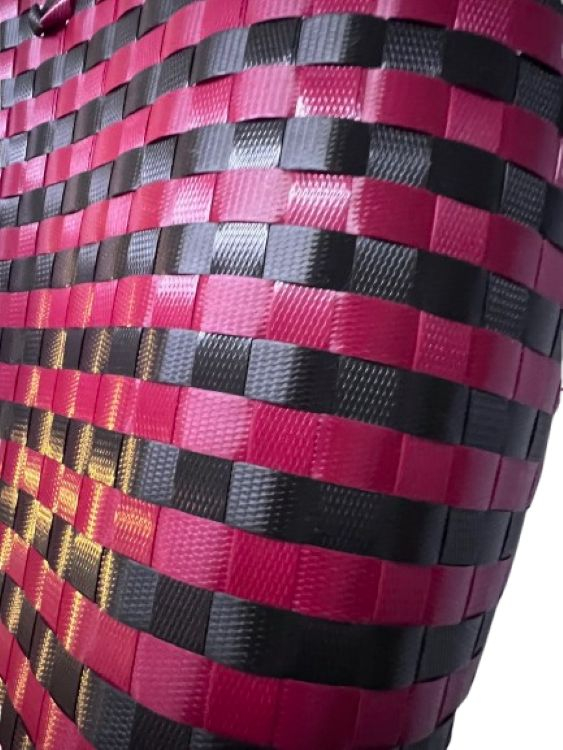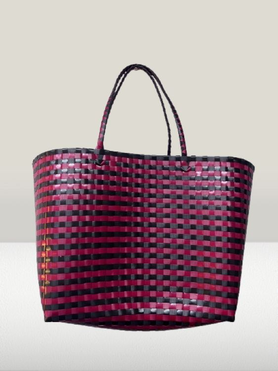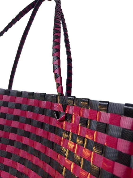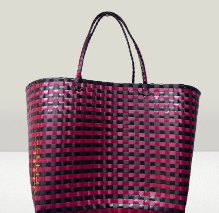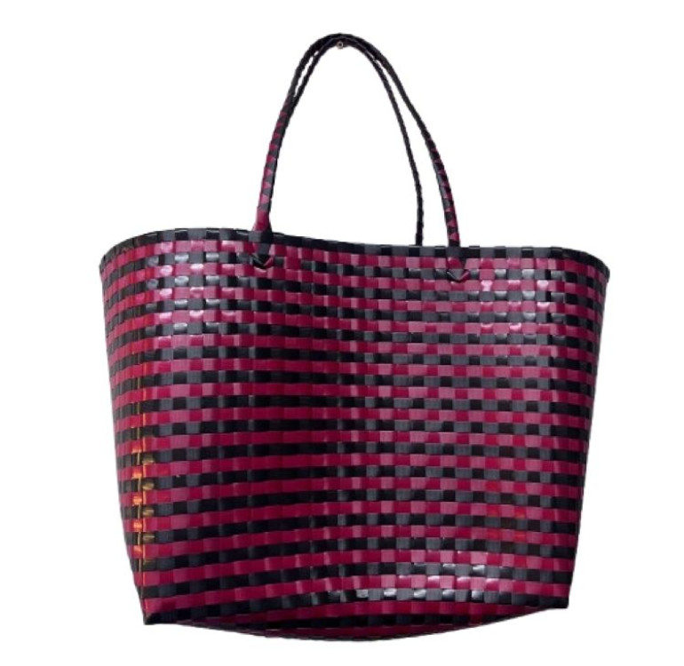 Recycled Plastic Weaved Bag - Red and Black Weave