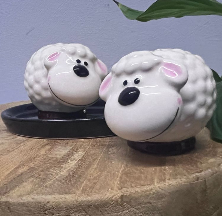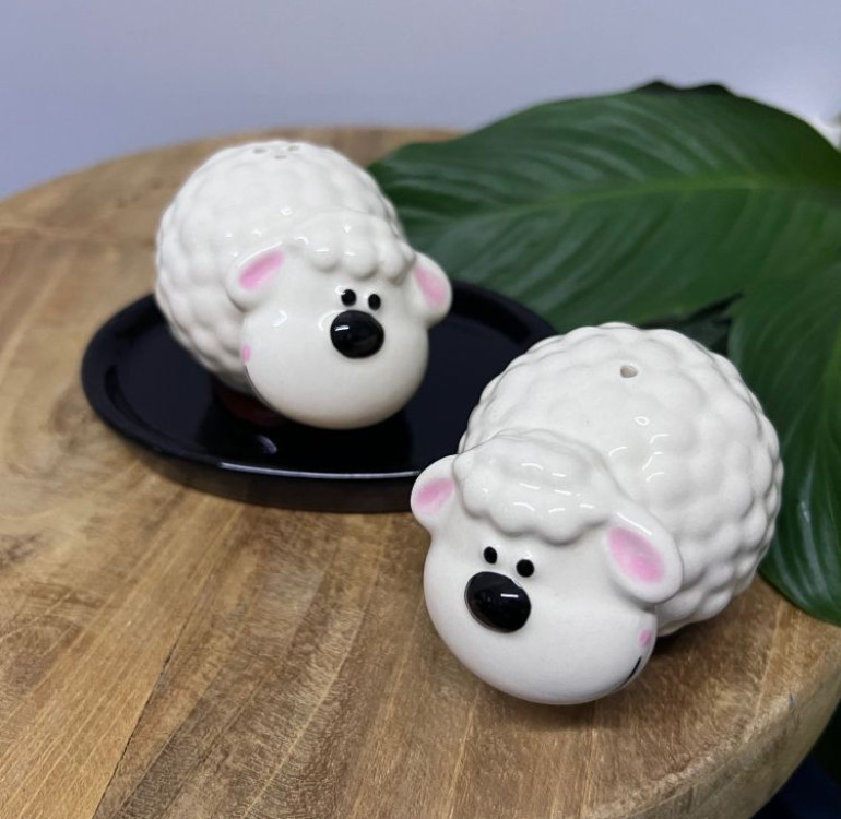 Ceramic Salt and Pepper Shakers - All White Sheep Design