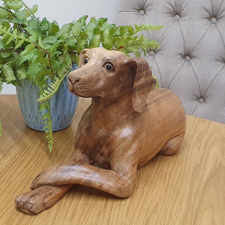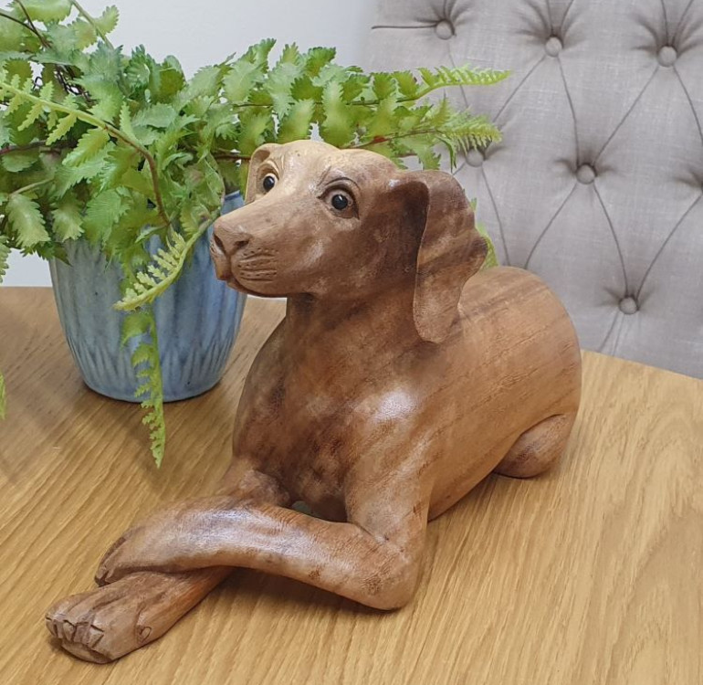 Made by artisans, each piece is unique as hand carved from a single piece of natural wood. Colourings, grain and measurements may will differ slightly from dog to dog but illustration used is a good example.