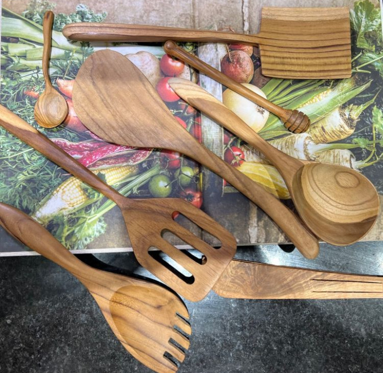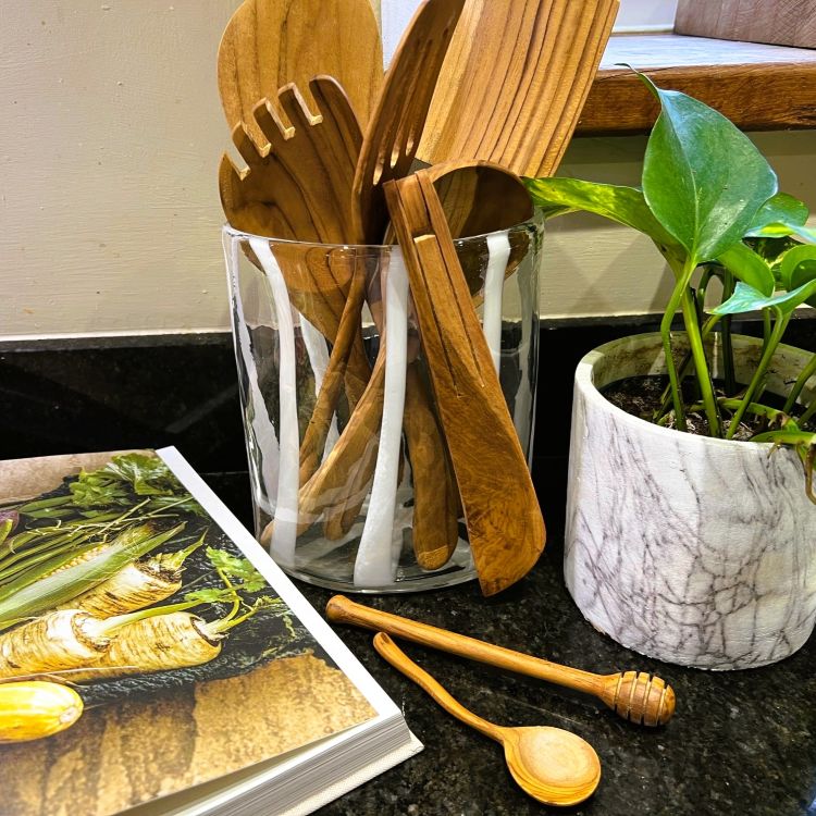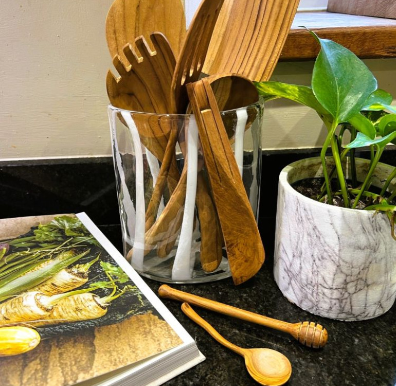 Travellers Finds brings you a beautifully designed collection of 8 handcrafted teak kitchen utensils.