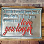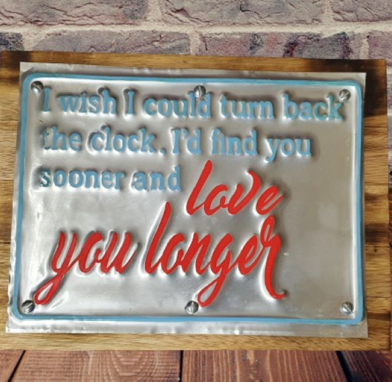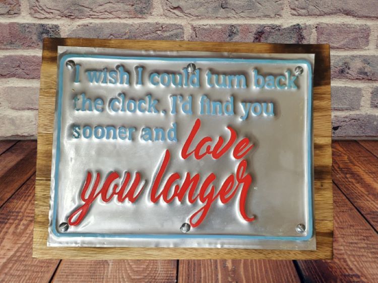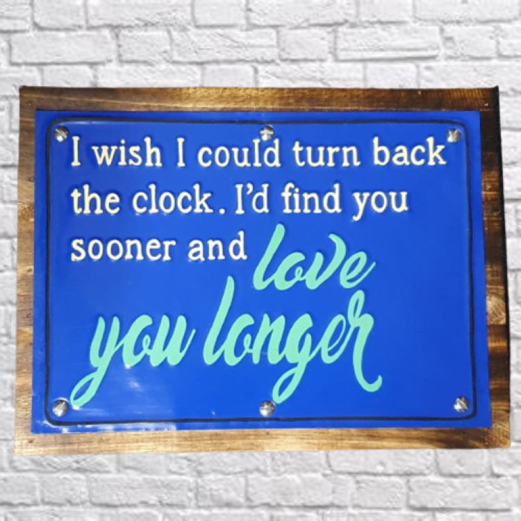 Large wood and tin sign board "I wish I could turn back the clock. I would find you sooner and love you longer"